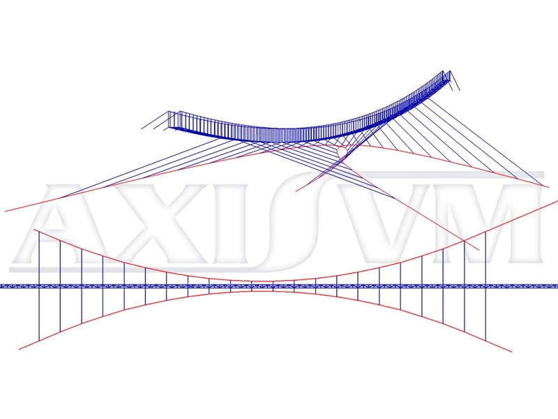 La structure qui travaille que à la traction doit absorber les charges des alpinistes ainsi que des vents forts. Grâce à la flexibilité de AxisVM aussi cette construction était modélisée et analysée à laide de ce logiciel 3D universel."
